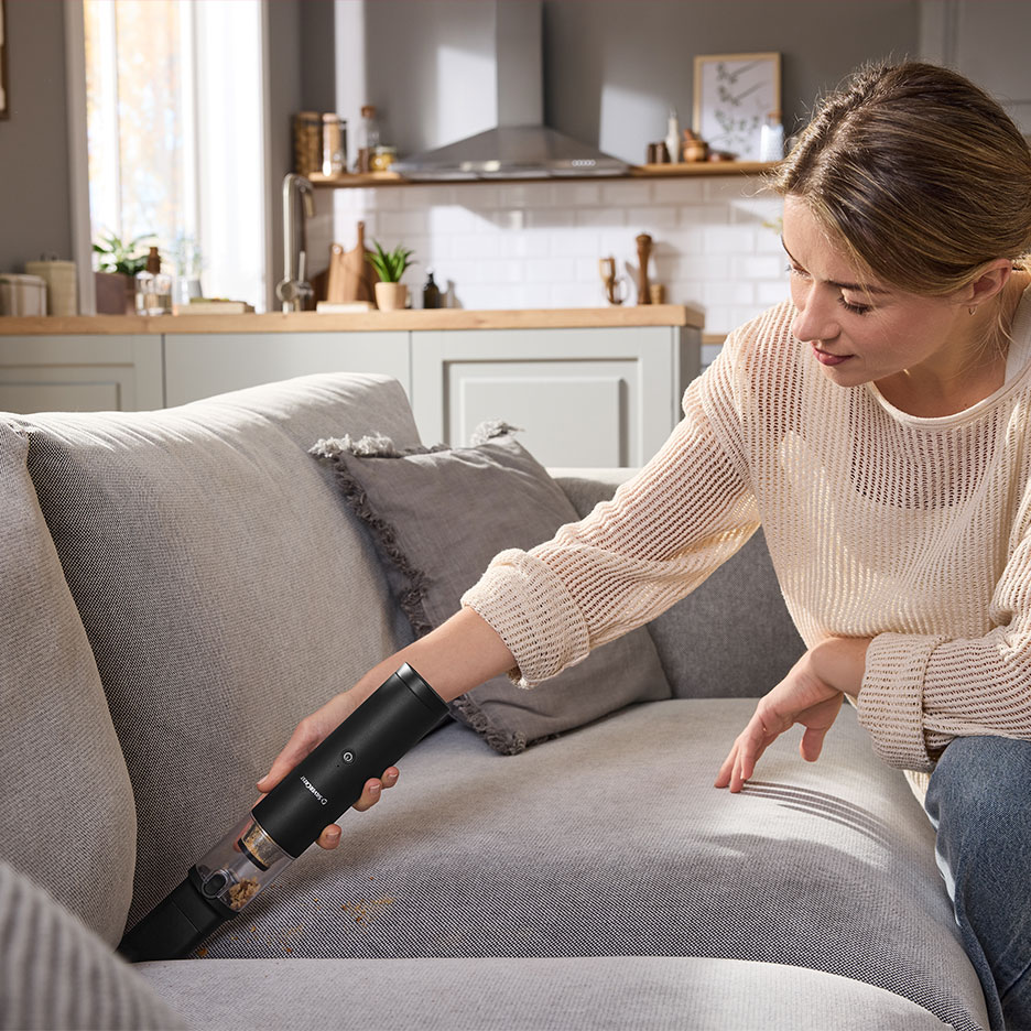 Чистка диванов с помощью пароочистителяПаровые очистители отличаются особой тщательностью. Пар, нагретый до температуры около 150 градусов, надежно уничтожает микробов и пылевых клещей - идеальное решение для аллергиков. Пар проникает глубоко в обивку и удаляет стойкие и въевшиеся загрязнения, а также неприятные запахи.Используйте пароочиститель с подходящим тканевым чехлом. Он распределяет пар, предотвращает появление царапин и задерживает грязь. После чистки чехол можно положить в стиральную машину Важно: Перед использованием пароочистителя всегда проверяйте, предназначена ли для него ваша мягкая мебель. Ознакомьтесь с рекомендациями по уходу и проведите тест на незаметном участке. В противном случае волокна или цвет могут оторваться от ткани.